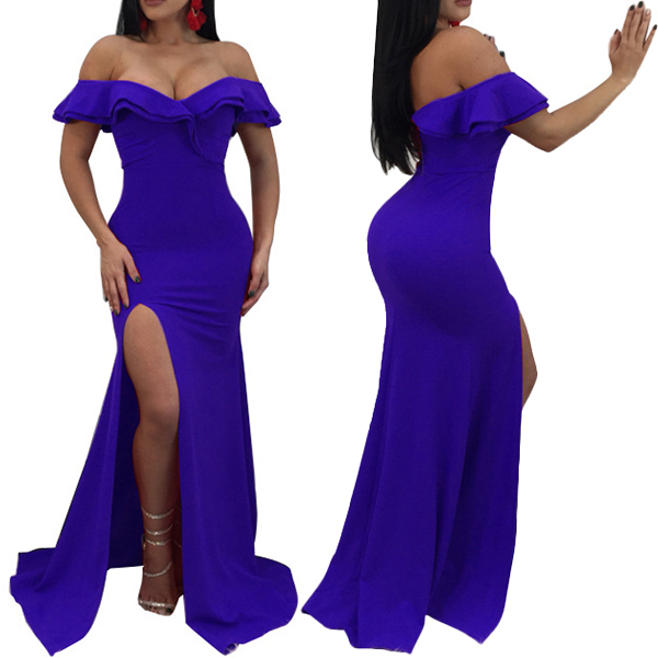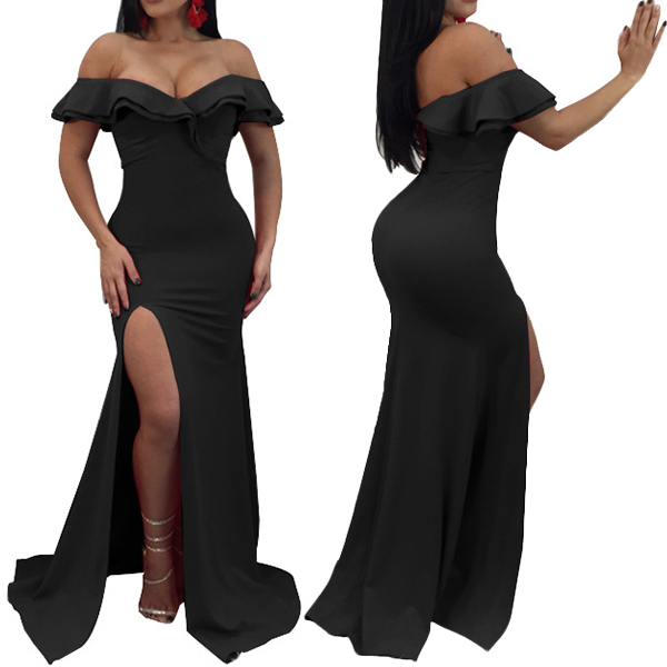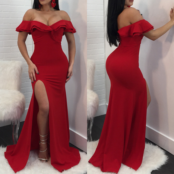 the off-shoulder,slit hem and ruffle design make this dress look so sexy and sultry. When you throw yourself