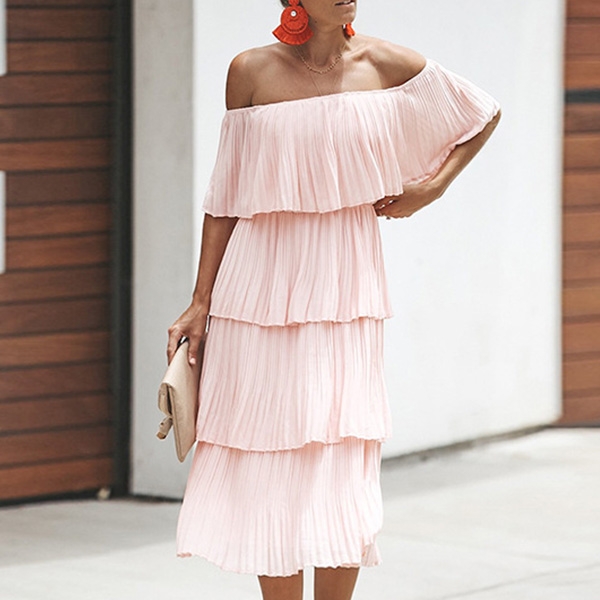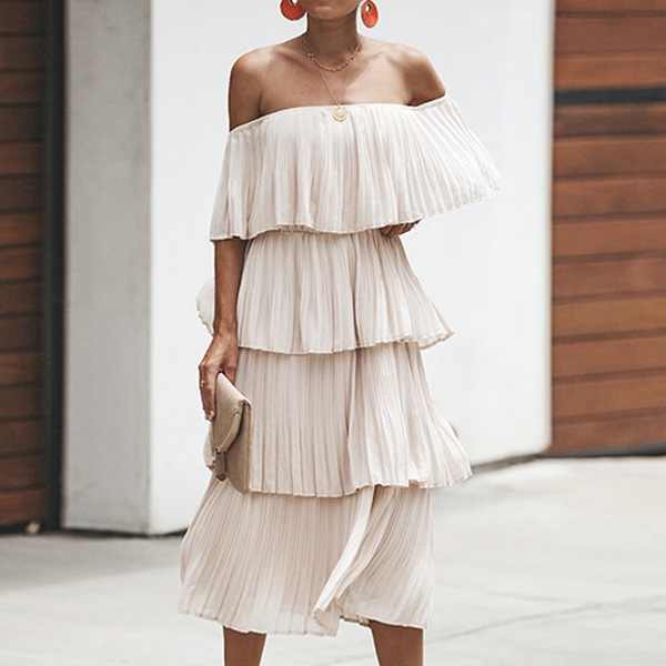 When strolling on the street with this cake dress,you can easily turn more heads. Solid color style,