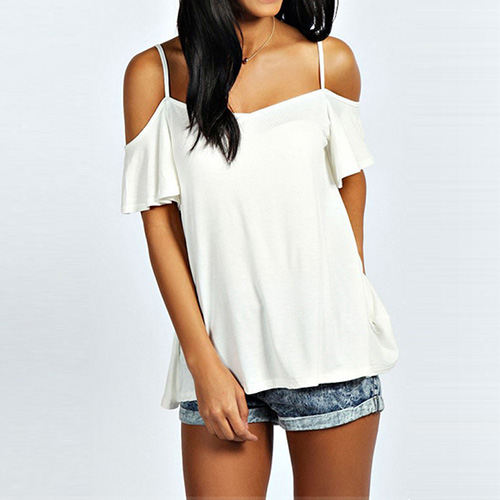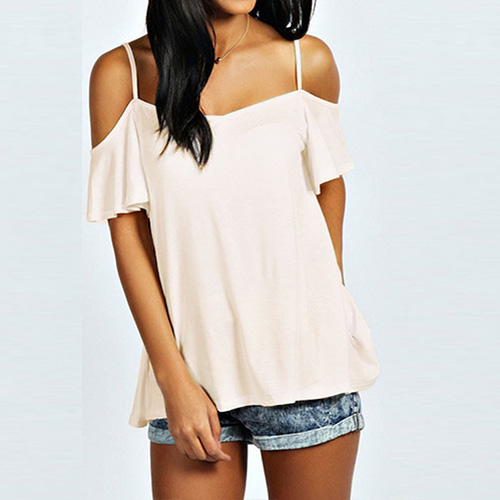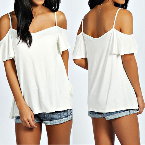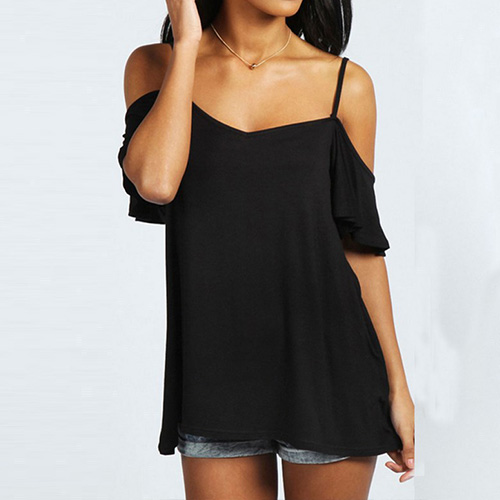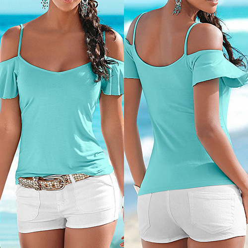 Start your wonderful day from this tops! Sling style,finished with a solid color,short sleeves and