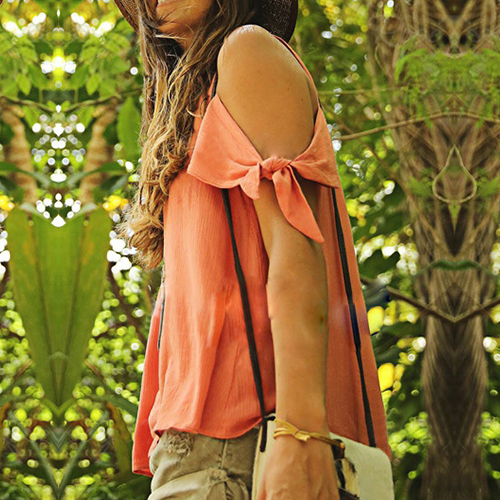 you an all-day comfort. And its off-shoulder and knotted design makes it look more sexy and chic.
