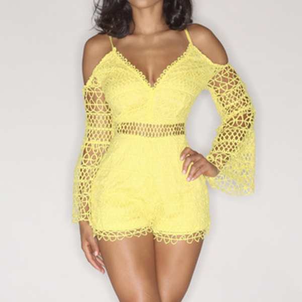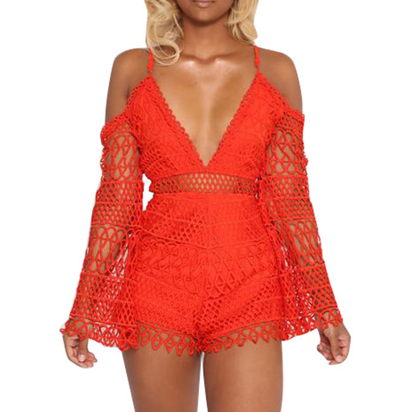 When dressing yourself up with this lace romper,you can easily arouse their attention. Solid color style,the off-shoulder,