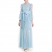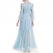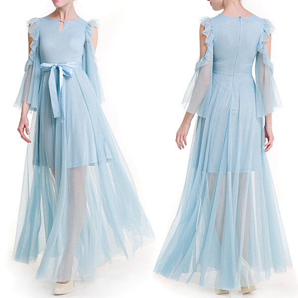 gauze dress. The off-shoulder trumpet sleeve and gauze hem design make this piece look so sexy and charming.