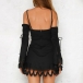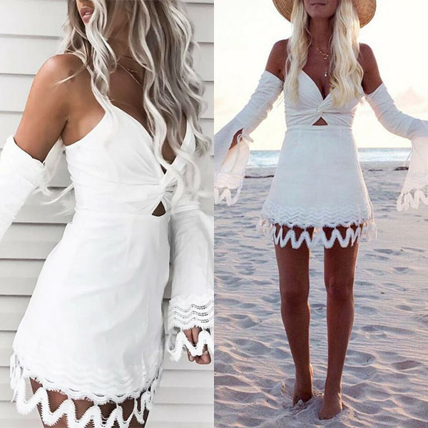 Don this dress to arouse a splash. Sling style,the off-shoulder,trumpet sleeve and lace spliced design