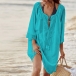 For your beach days,you can count on this dress to give you a stylish and beautiful beach look.Its trumpet sleeve and lace spliced design will enhance its charm,while the loose silhouette design can offer you a comfortable day. Matching with your sexy bikini set would be a good idea.