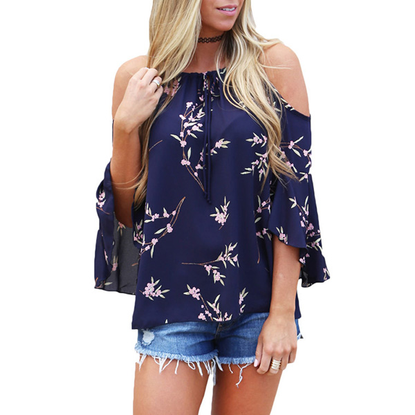 the off-shoulder and trumpet sleeve design are the highlights,which make this piece look more attractive.