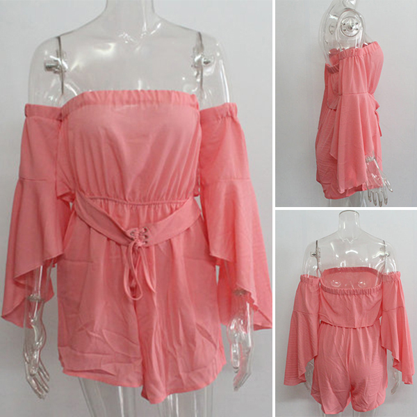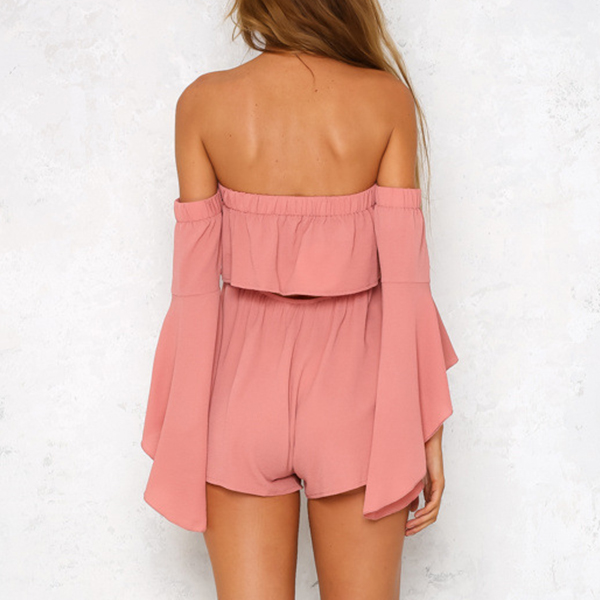 Make your style to a new level with the help of this romper. Boasts a sweet pink tone,accompanied with an off-shoulder wide