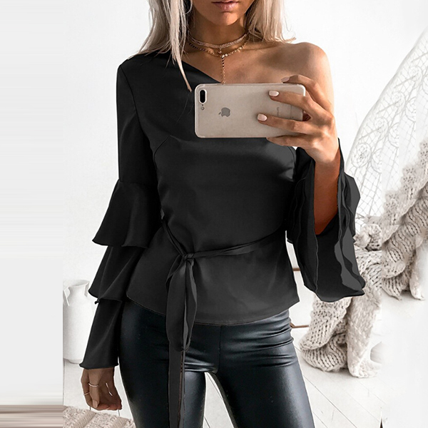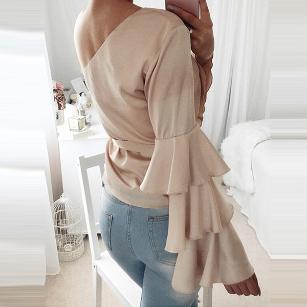 and trumpet sleeve,this top not only can give you a sexy style,but also can further enhance your female charm.