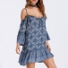 Sling style,its chic printed details,trumpet sleeve and off-shoulder design make this piece look so