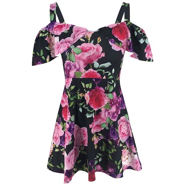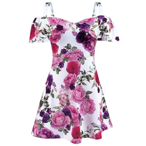 Sexy Off-Shoulder V-Neck High Waist Printed Sling Dress(Without belt)