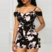 Sexy Off-shoulder V-neck High Waist Printed Sling Romper(It falls small)