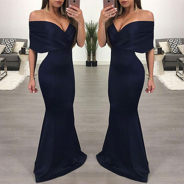 aims to give you an elegant and noble vibe,while the off-shoulder v-neck and high waist design make this piece