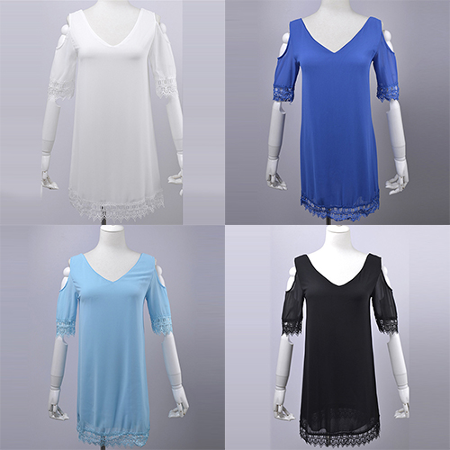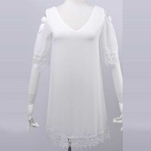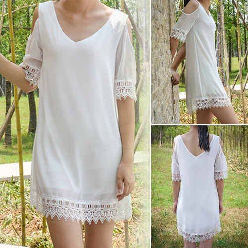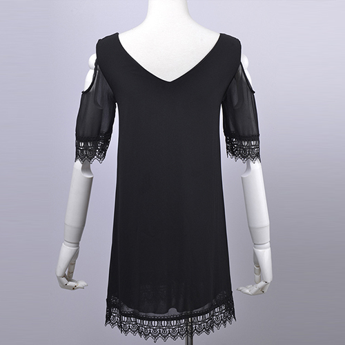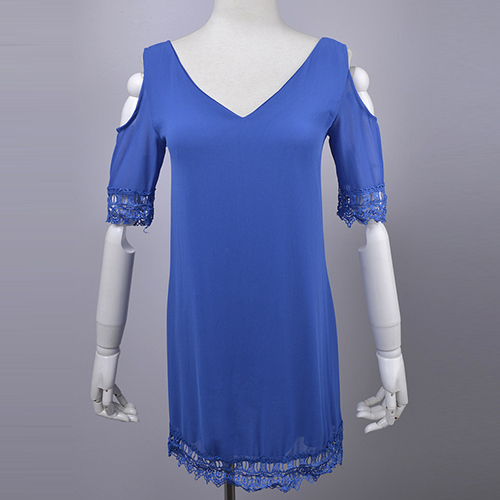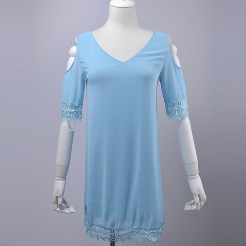 Start your wonderful day with this dress! Boasting a solid color,its off-shoulder,v-neck and lace
