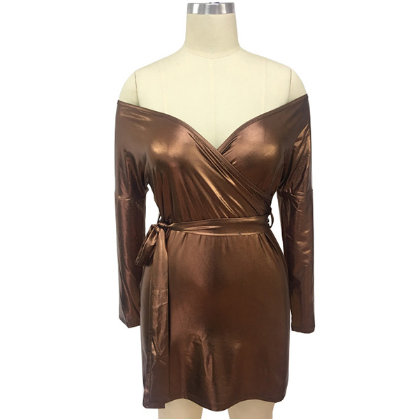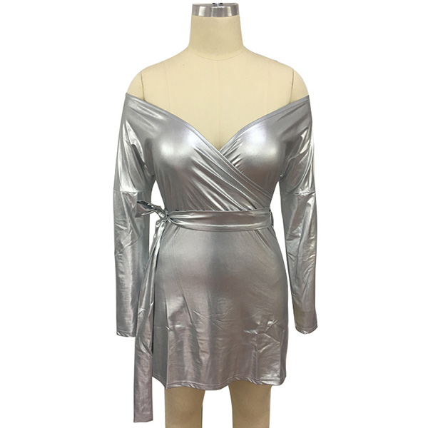 You don't need to wonder why all eyes are on you when you don this dress! Its off-shoulder v-neck and slit hem design