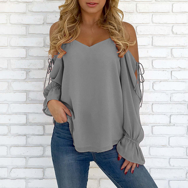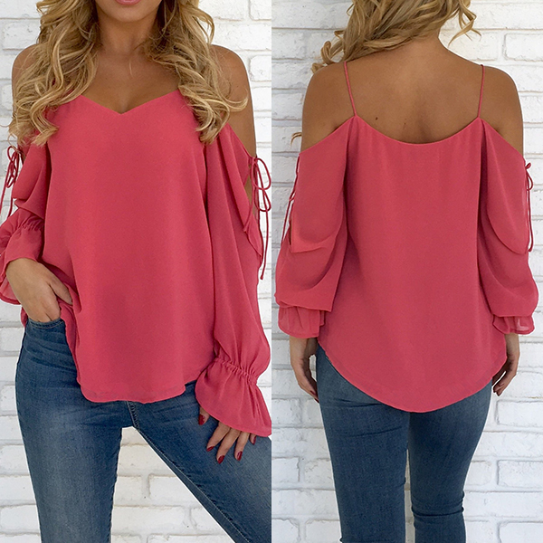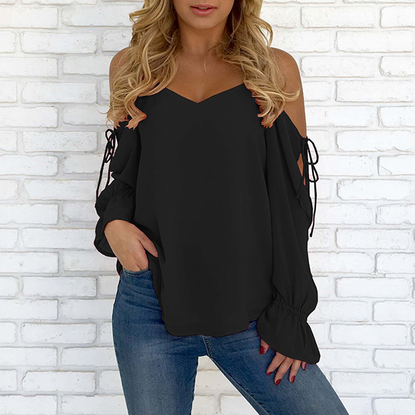 Comes with a solid color tone,accompanied with off-shoulder and v-neck design,sexy yet feminine.