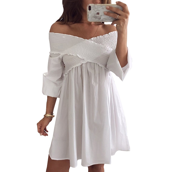the off-shoulder v-neck design can give you a sexier look. If adding a stunning choker necklace,