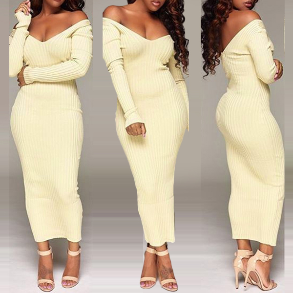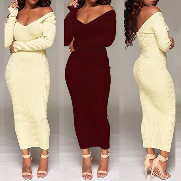its soft and cozy knitted fabric will ensure you a comfortable wearing experience,while the off-shoulder v-neck and tight