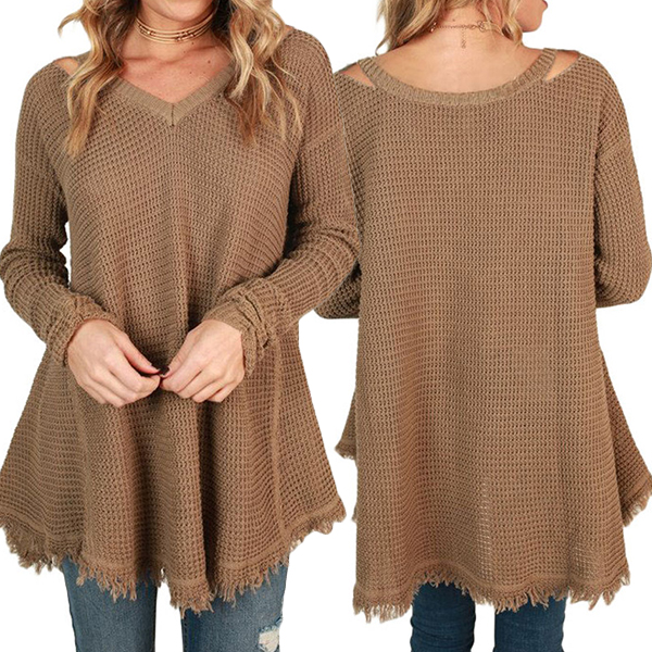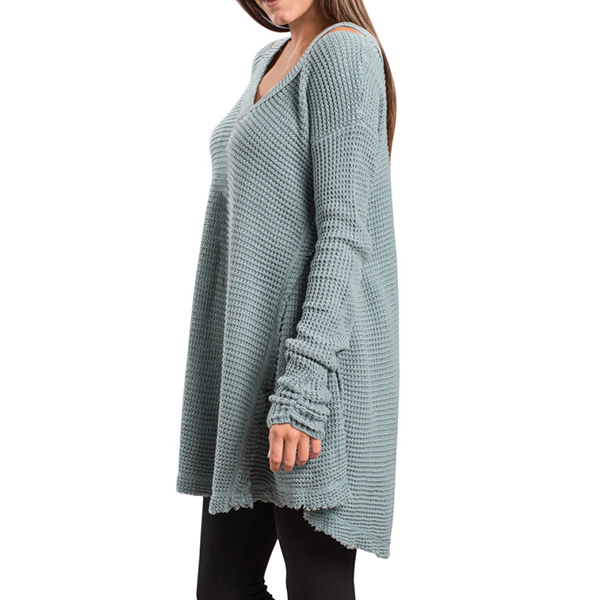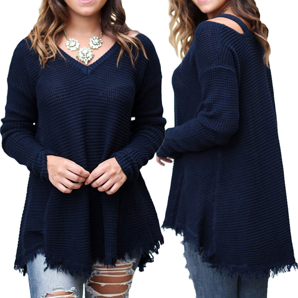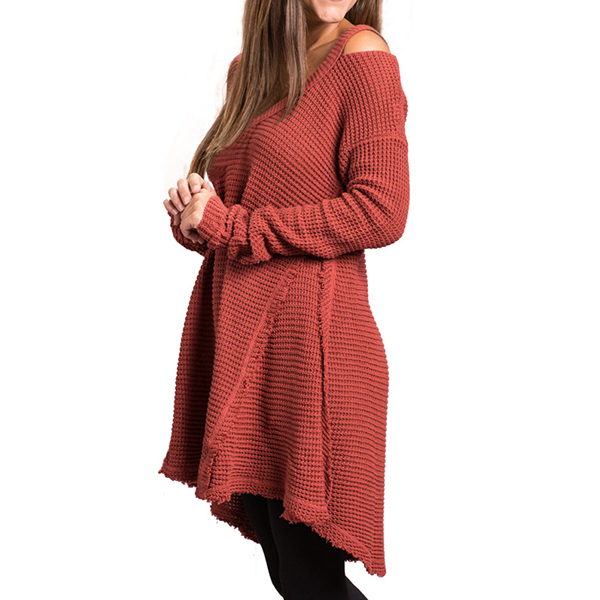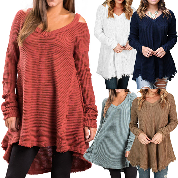 Invite this sweater to your wardrobe to give it a seasonal update. Solid color style,the off-shoulder and v-neck design