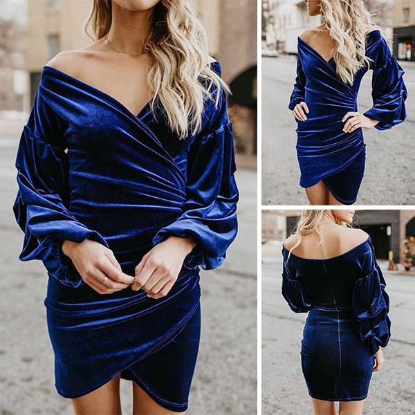 Solid color tone design can give you an elegant vibe,while the off-shoulder v-neck design makes this piece look sexier.