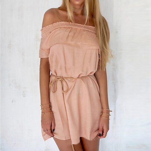 This dress features a solid color style,its slash neck design gives you the chance to show off your charming