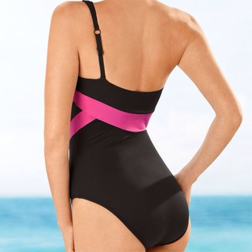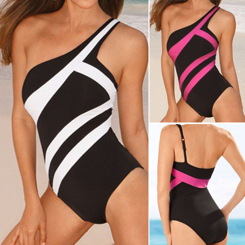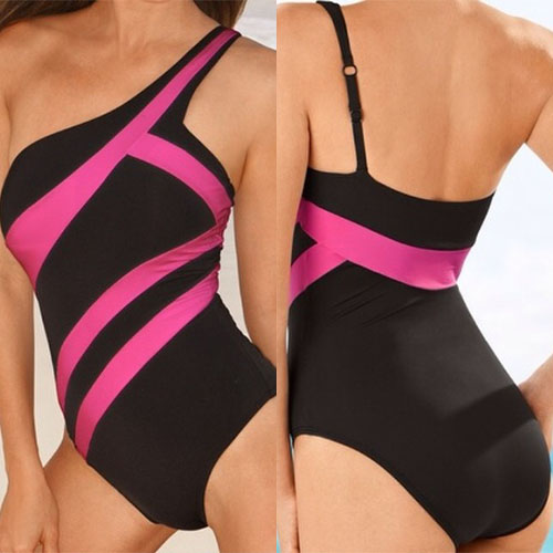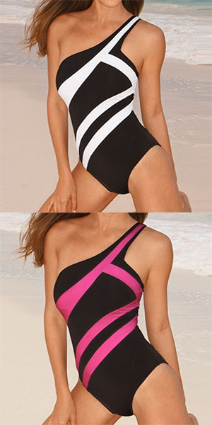 One-shoulder style,with contrast color and backless design,this one-piece swimsuit is