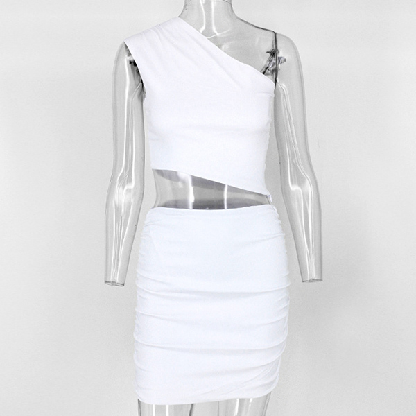 Sexy One-shoulder Crop Top + High Waist Skirt Two-piece Set