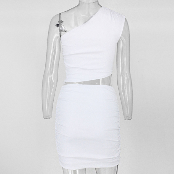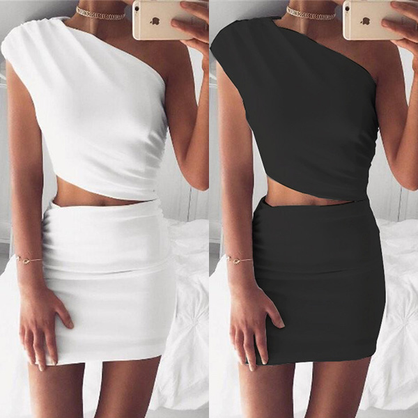 Solid color style,including an one-shoulder crop top and a high waist skirt,this two-piece set can exude your charming
