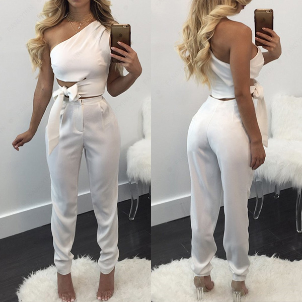 Look exceptionally stunning and charming when you slip into this two-piece set. Solid color style,including an one-shoulder