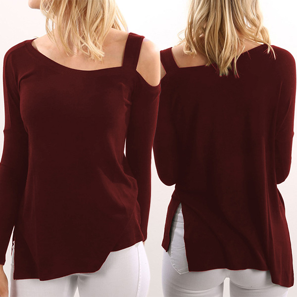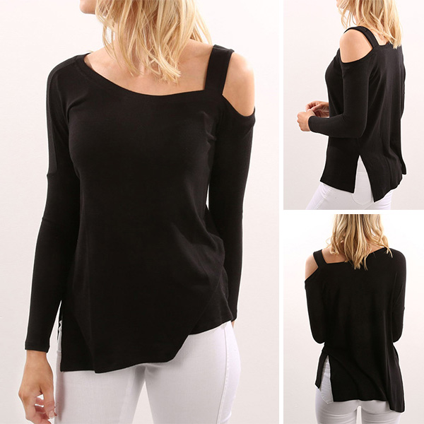 accompanied with one-shoulder and slit hem design. Compared with your simple and classic t-shirts,this one can bring