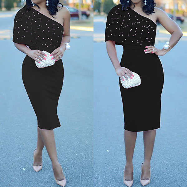 One-shoulder and pearl design make this piece look so sexy and gorgeous. Paired with your sexy heels