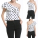 Expose a hint of your skin through this chiffon top. One-shoulder style,with dots printed design adds a touch of cute and