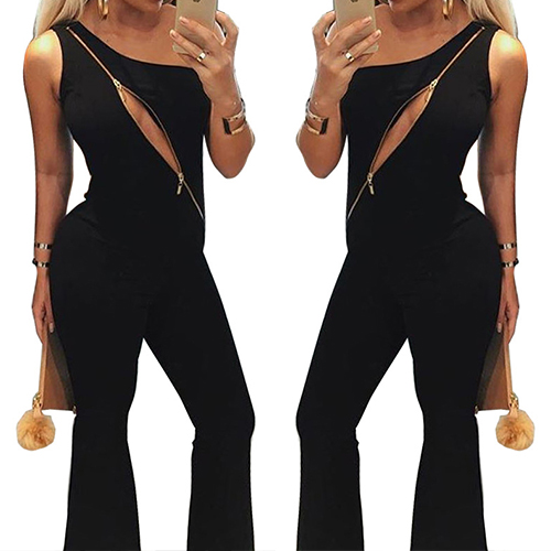 This jumpsuit gives you the chance to change a different style. One-shoulder style,with sleeveless