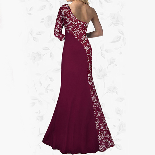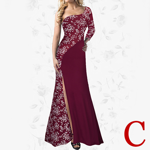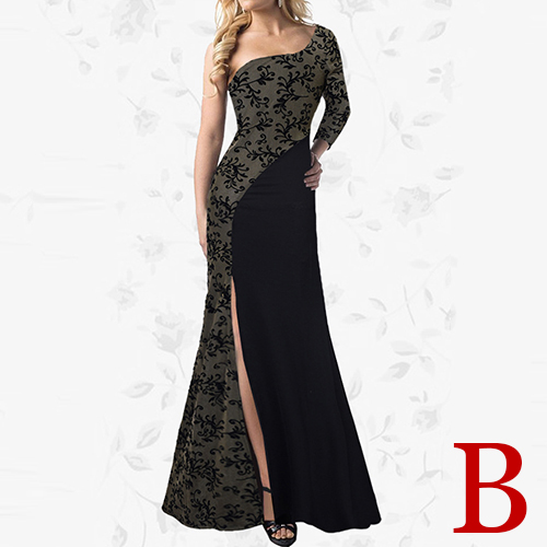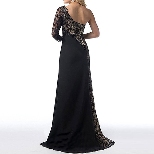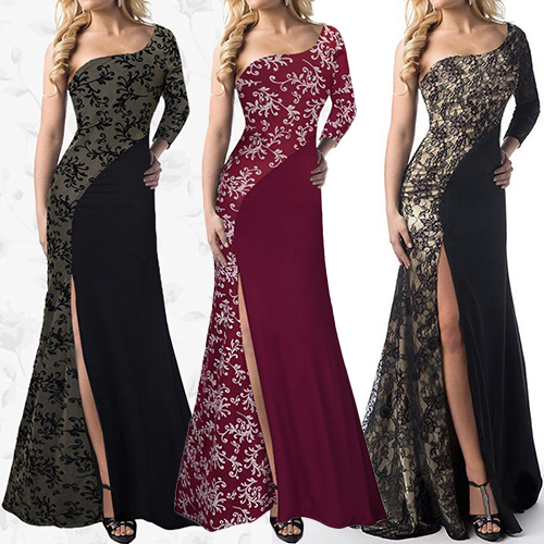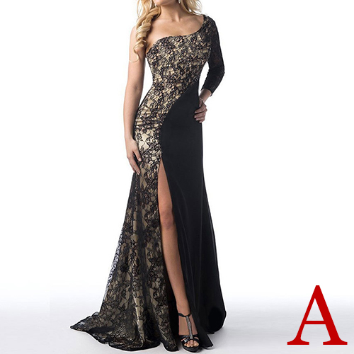 such as one shoulder,slit hem and lace spliced make this dress look so sexy and seductive. Be it a prom