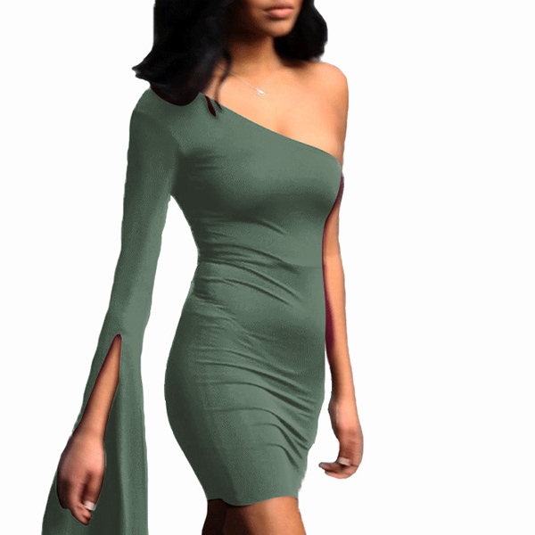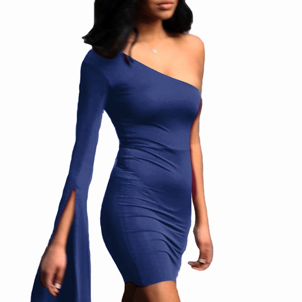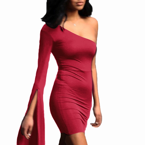 as your perfect partner. The one-shoulder and slit long sleeve design make this piece look so sexy