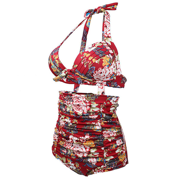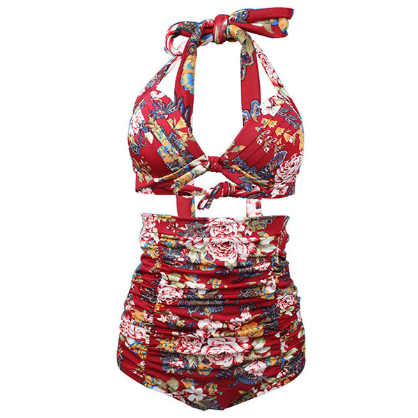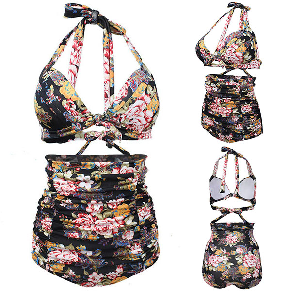 romantic and playful. Consists of a halter bikini top and a high waist bikini bottom,this bikini set can give you a memorable beach day.
