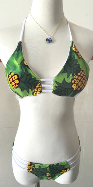 Boasts chic and eye-catching pineapple printed pattern,this bikini set will make you be the focus on