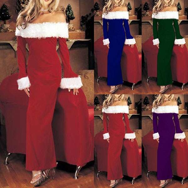 For the coming Christmas party,you can count on this dress to win more eyes. The off-shoulder boat neck