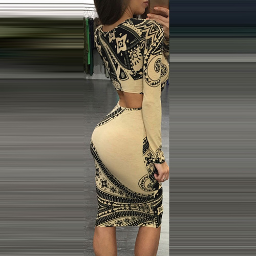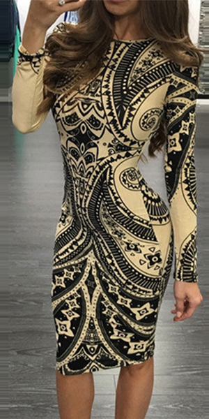 Designed with chic printed, round neck, long sleeve and back hollow out; this dress can effortlessly bring you