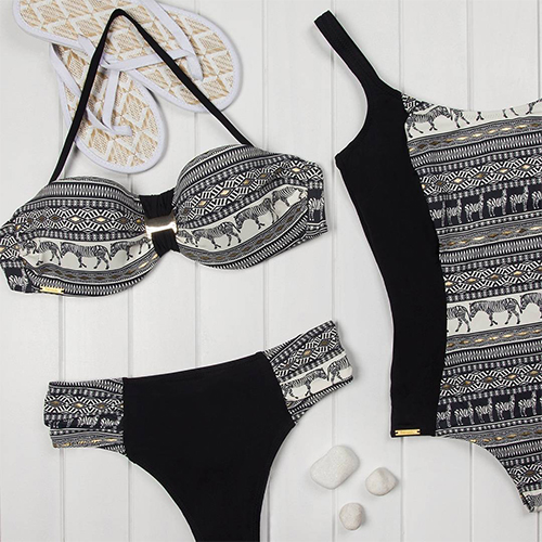 a bandeau bra with a detachable shoulder strap, and a triangle briefs,this bikini set is sure to give you a happy beach time.