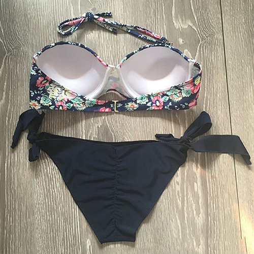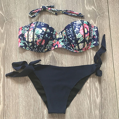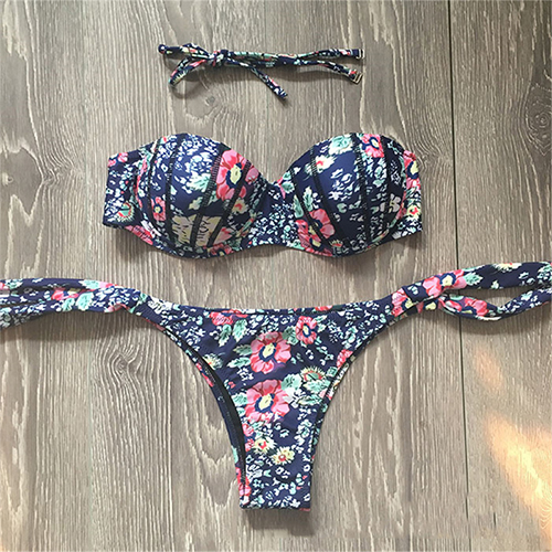 Features chic printed pattern,including a bandeau bra with detachable shoulder strap and a low-waist briefs,this bikini
