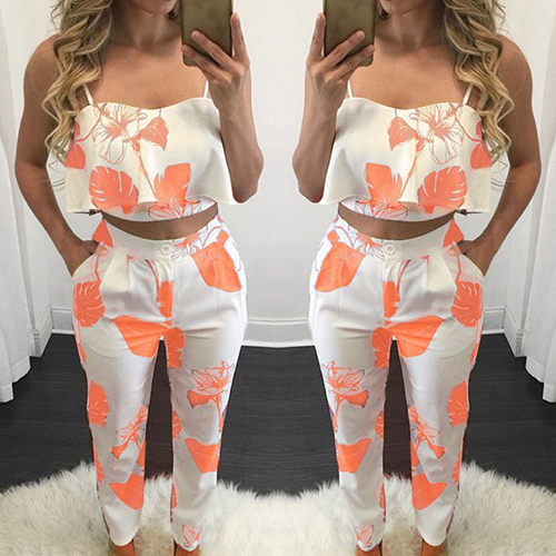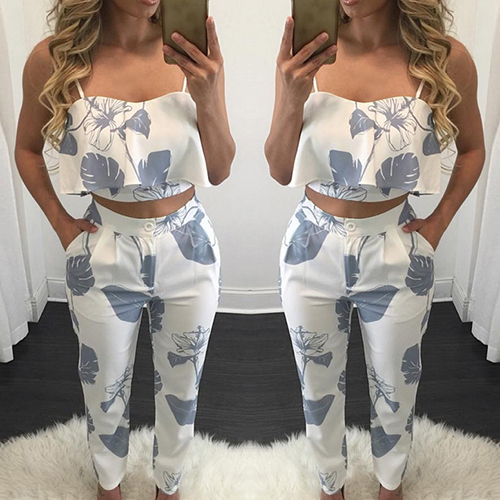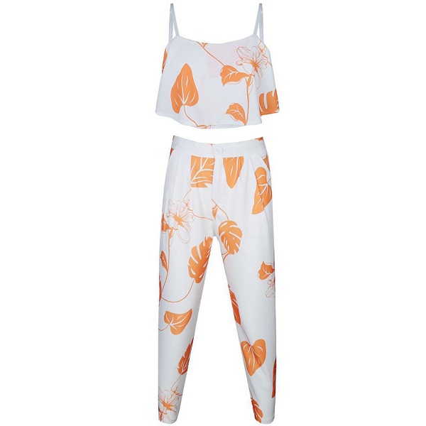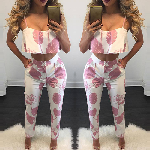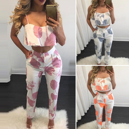 Features chic printed pattern,including a cami top and a high waist pants,you can just slip into this wonderful
