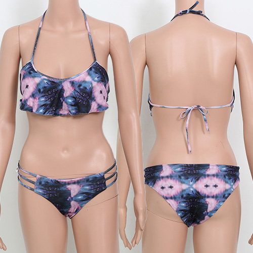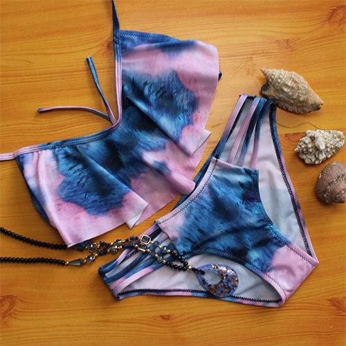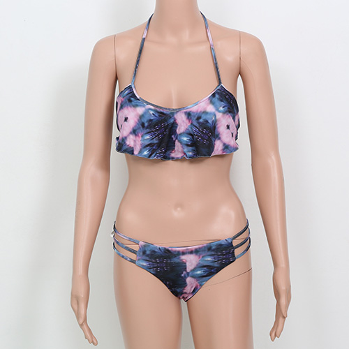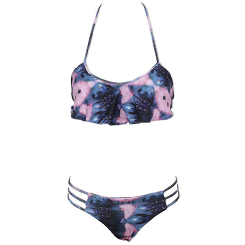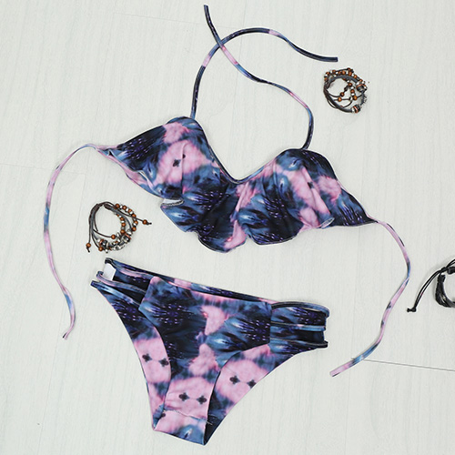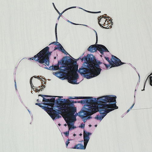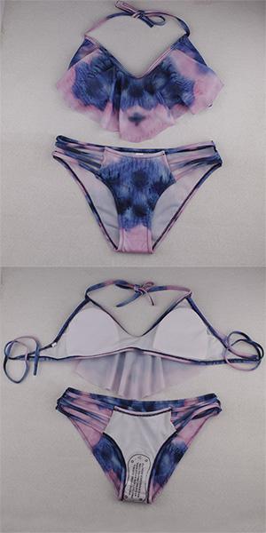 This bikini set features chic printed pattern,its flouncing design makes it look more sweet and charming.
