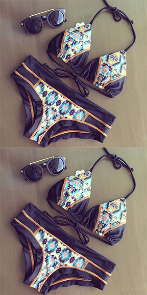 Let your skin kiss the beautiful sunshine with this bikini set. Boasting unique print and halter design, chic and sexy.
