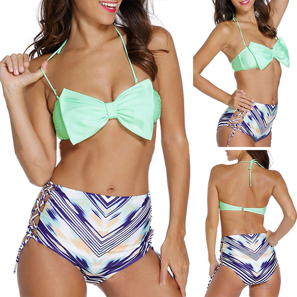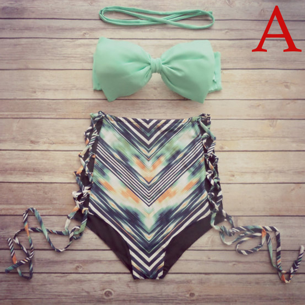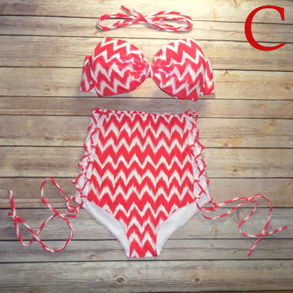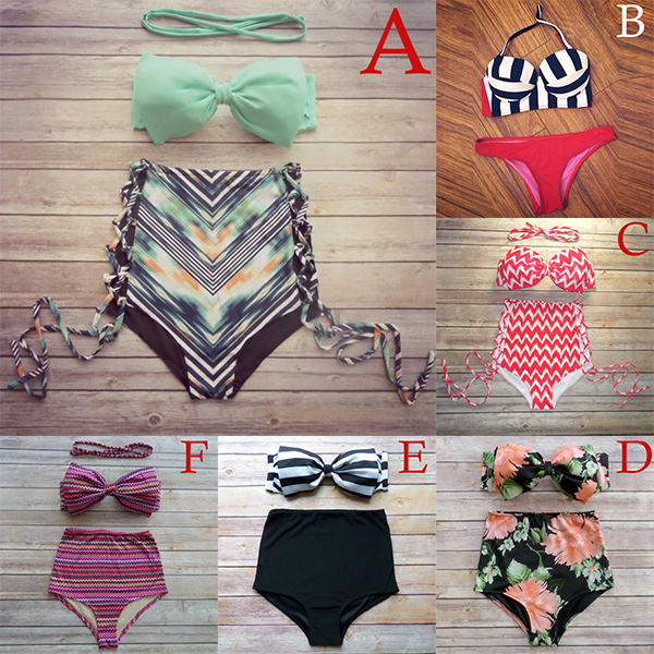 Including a bandeau bra and a high waist briefs,this bikini set will give you a happy beach trip.