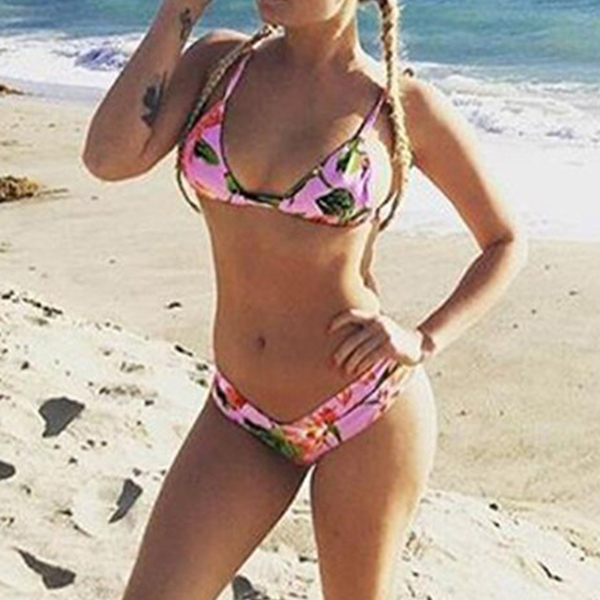 Printed bikini and beach is a perfect matching! So when you head to the seaside,you can opt for this bikini set. Features