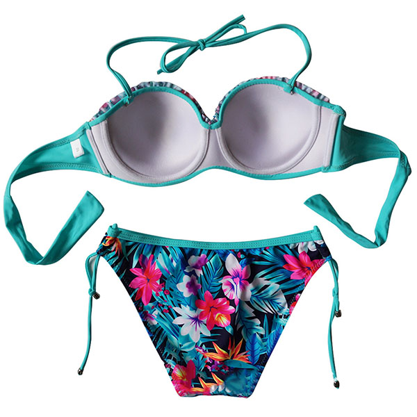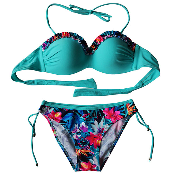 Hey,girls,just enjoy your beach days with this cozy yet sexy bikini set. Printed spliced design will give you