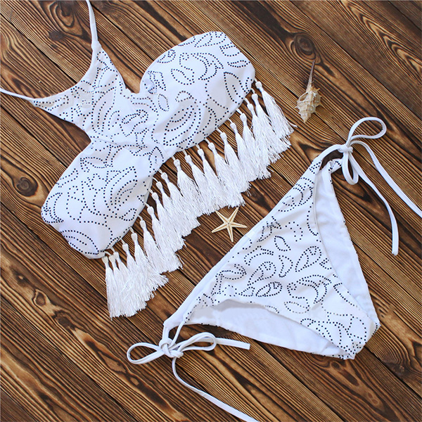 Wanna be the focus on the beach? Then you can opt for this bikini set! Its chic printed pattern and tassel design makes