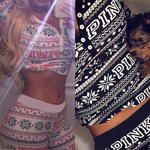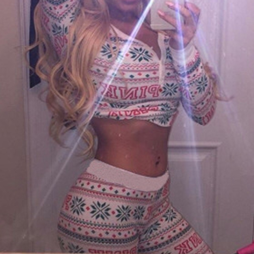 Sexy and fashion style, this set includes a v-neck long sleeve crops tops and pants. Chic printed pattern can