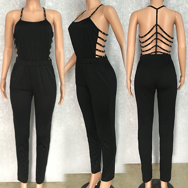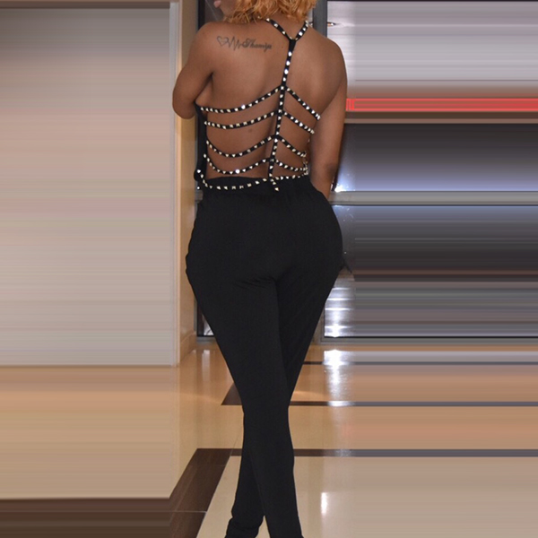 Seductive appeal comes easily once you slip into this jumpsuit. Boasts an elegant and mysterious black tone,its backless