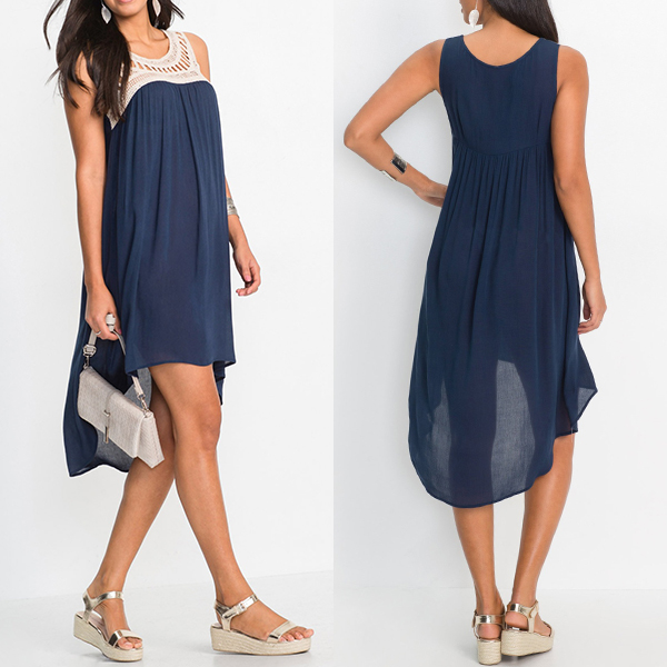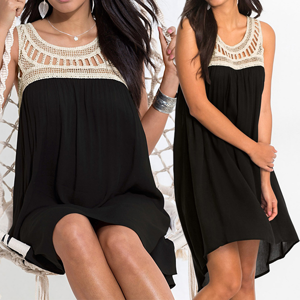 Designed with contrasting color style, featuring sleeveless, round neckline and irregular hem detail. This dress can easily be worn during weekend appointments and dates.Don't miss it!!!