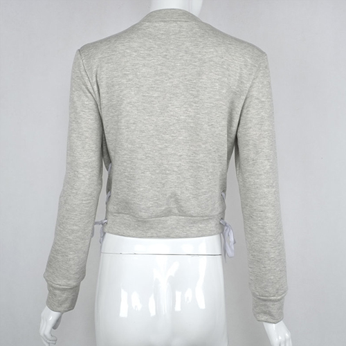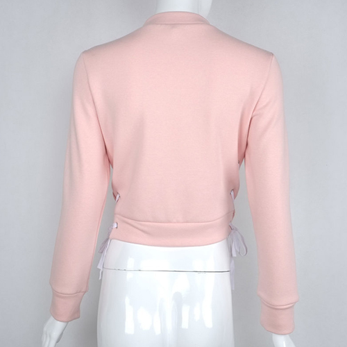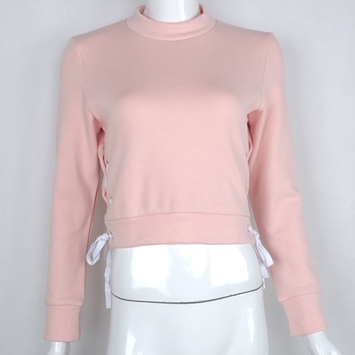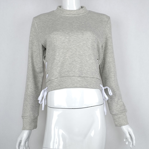 Featuring round neck, long sleeve and side lace-up design, complemented with a slim-fitting